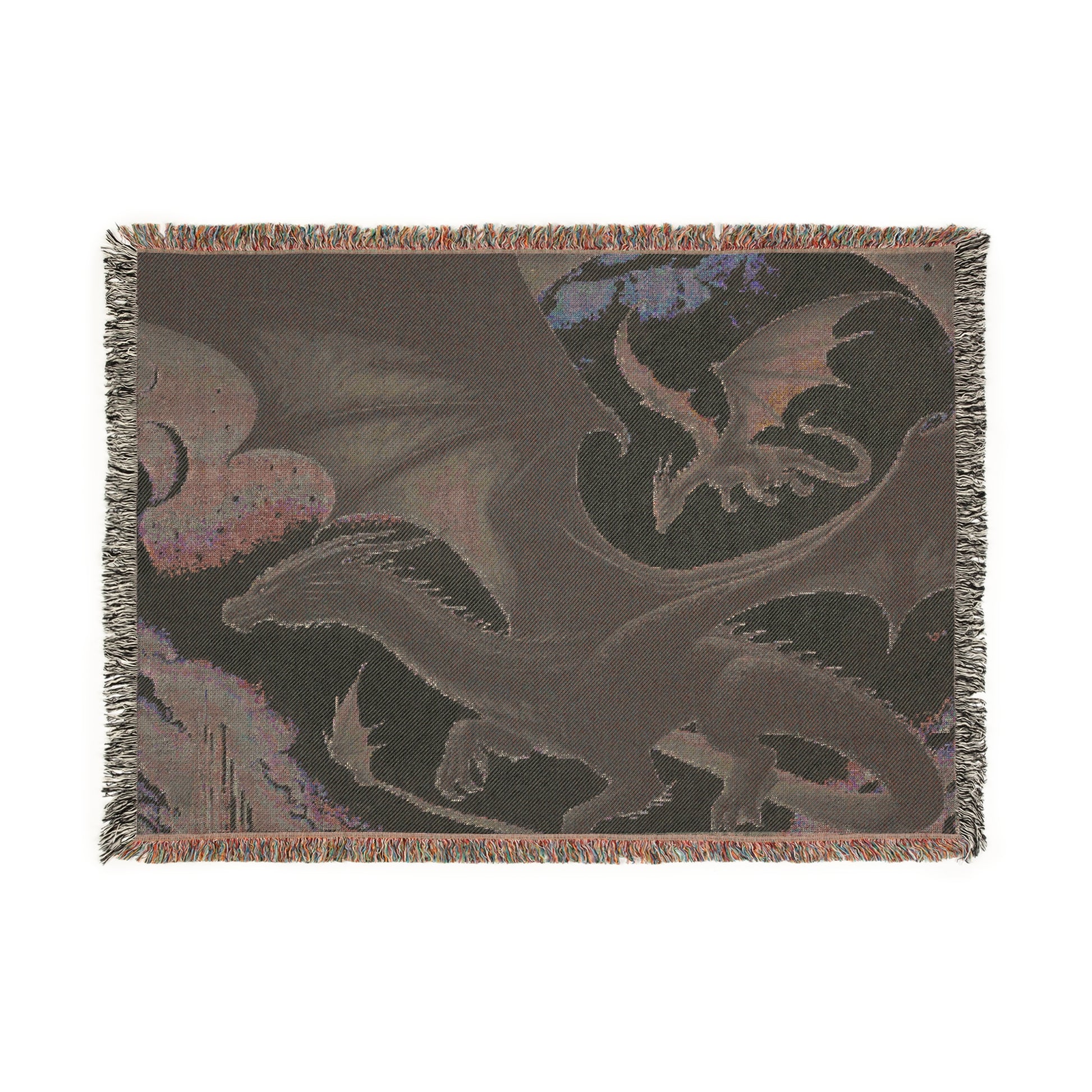 Dragon-Themed Woven Blanket, Cozy Dragon Tapestry, Fantasy Decor, Gift for Her, Home Accent for Game Night
