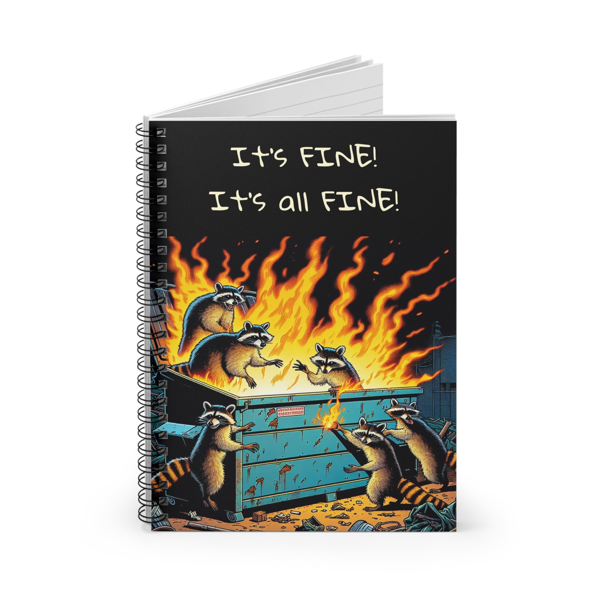 Funny Raccoon Spiral Notebook - It's FINE! Gifts for Students, Journals, Art, Eco-Friendly, Humor
