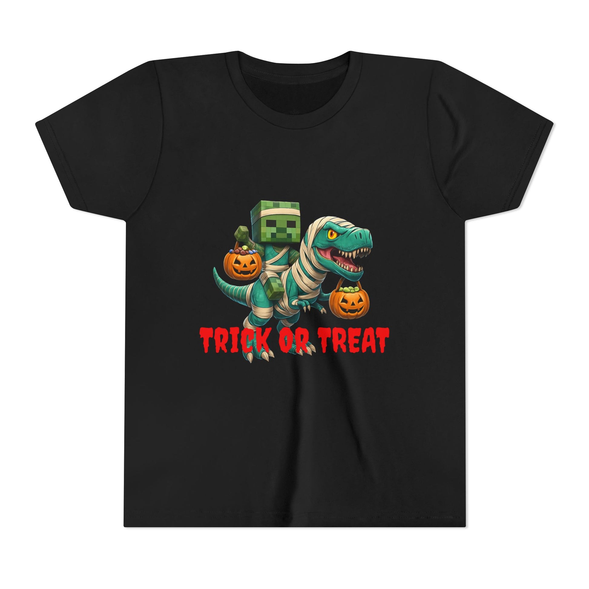 Halloween Dino Tee, Youth Short Sleeve T-Shirt for Kids, Trick or Treat Dinosaur Shirt, Fun Halloween Apparel, Kids Costume Tee